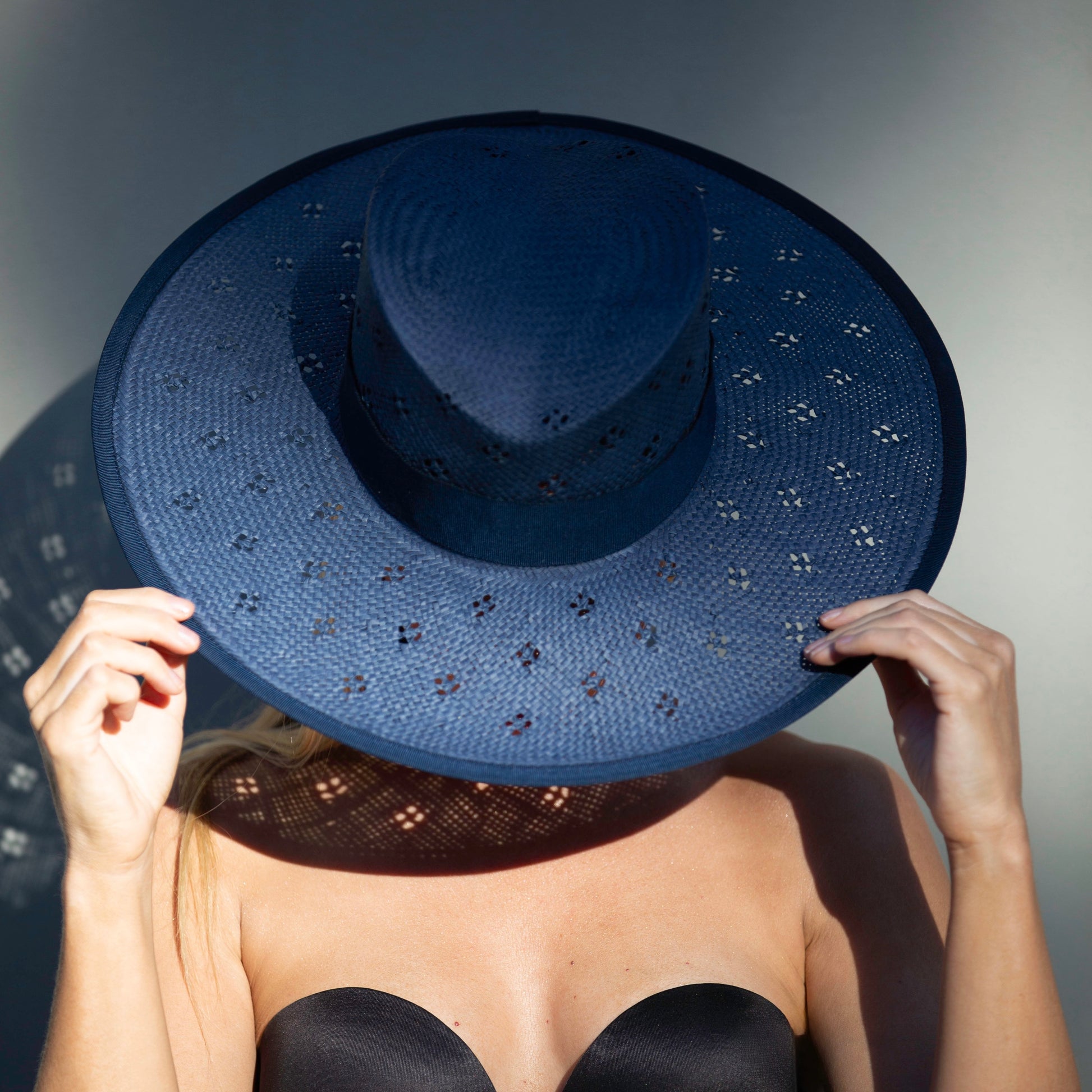 The perfect summer staple in navy. Tiny flocked holes finish this gorgeous piece.