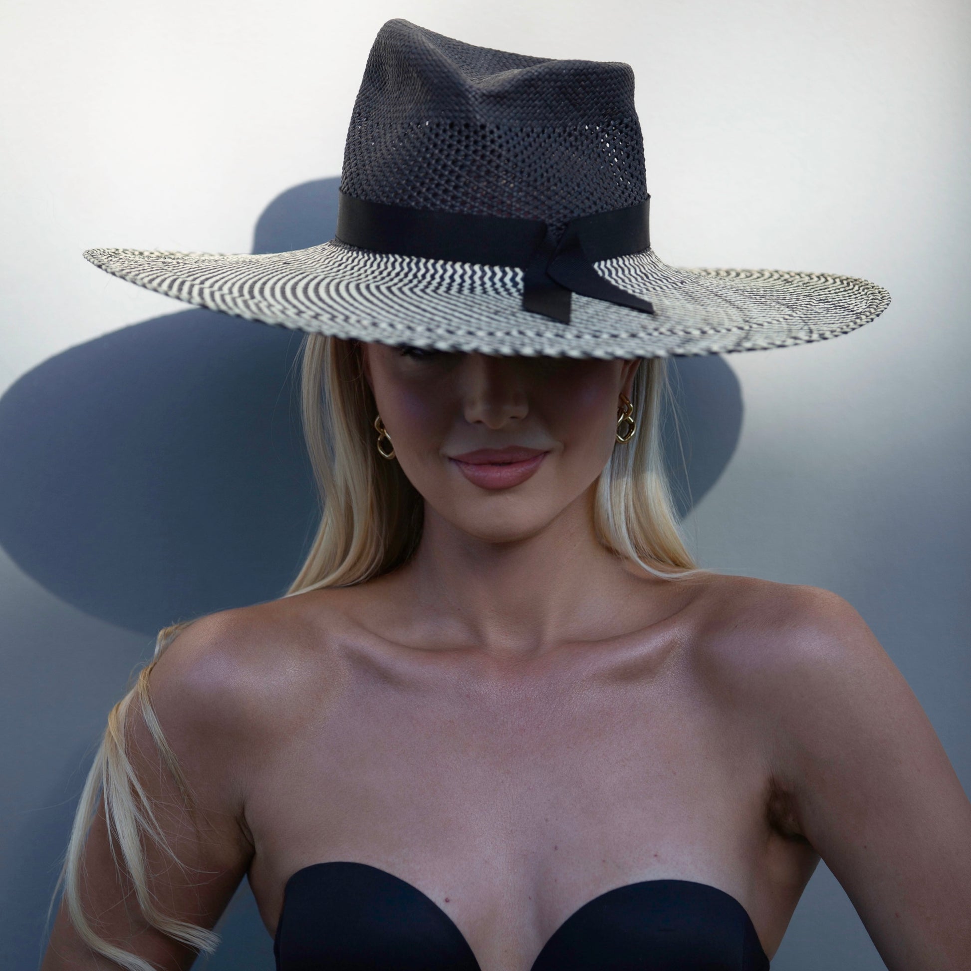 Part of the summer Panama range; this statement piece is crafted in black/natural straw and finished with a black ribbon.